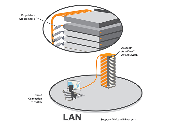 Der Avocent AV100 KVM-Basis-Switch bietet vereinfachten lokalen Zugriff, Verwaltung und Kontrolle von bis zu 16 Zielen über eine einzige Konsole. Dieser KVM-Switch mit einem einzigen Benutzer und kleinerem Formfaktor wurde speziell für IT-Räume, kleine Rechenzentren und Filialen entwickelt.