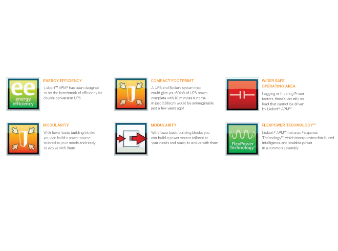 Liebert APM is the next generation UPS solution based on the scalable power platforms developed by Vertiv. What differentiates Liebert APM from other power protection solutions is its Adaptive Power Manager features. Unique in its class, the Liebert APM provides complete high efficient power protection and distribution in a single cabinet, eliminating the complexity of two-stage power distribution. Its intelligent and adaptive capability to manage power within the data center row makes it a suitable solution for business expansion in the future .It features FlexPower Technology™, which incorporates distributed intelligence and scalable power in a common assembly. It is suitable for small and medium businesses with the attitude to grow fast: thanks to its architecture that enables the UPS system capacity to start as low as 30kW which can grow with the business up to 600kW.
