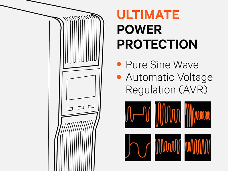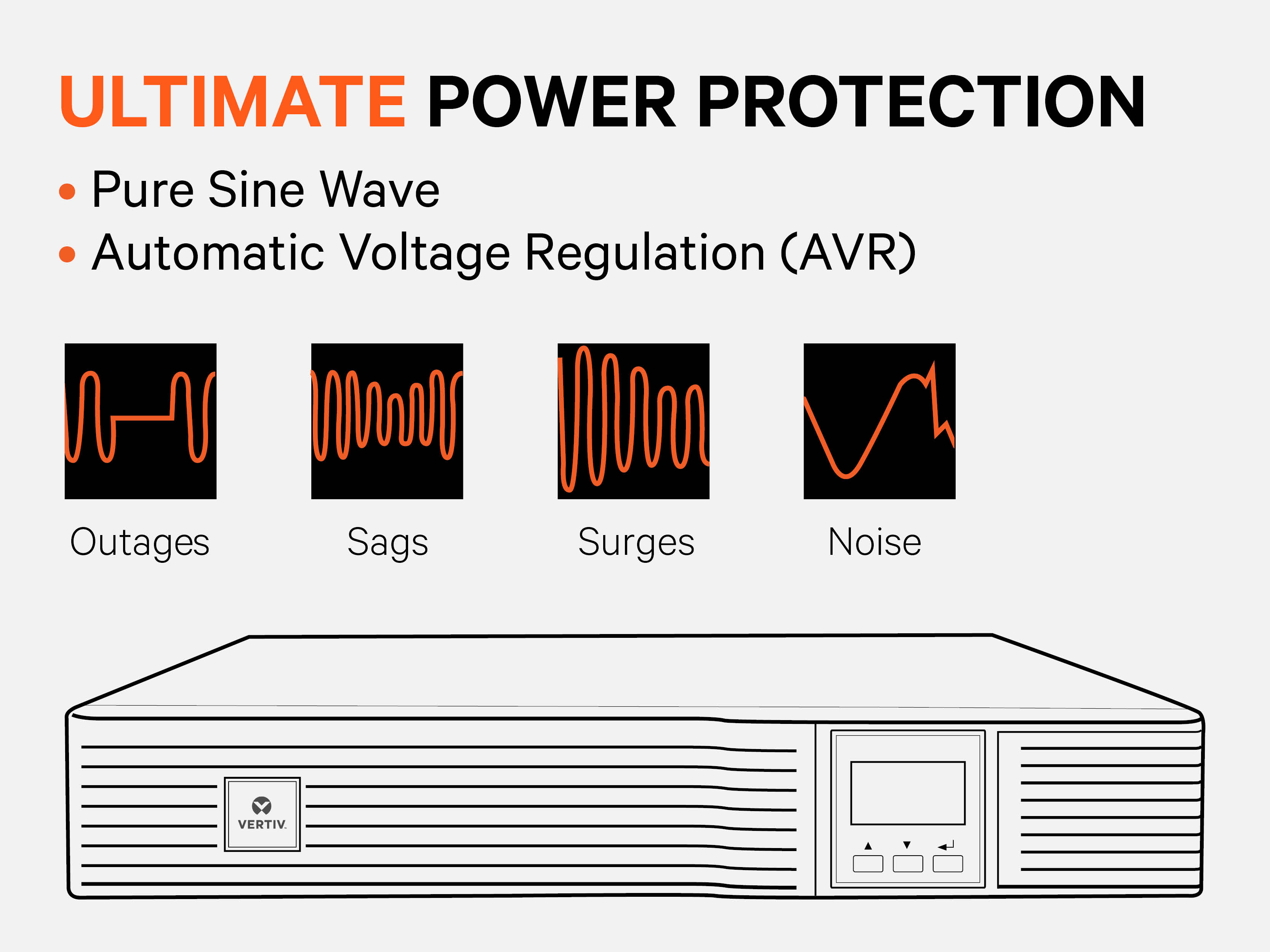 Compact, Automatic Voltage Regulation (AVR) line-interactive UPS system designed especially for IT applications such as network closets and small data centers. Supports advanced pure sine wave output on battery to safeguard critical IT equipment and electronics. Provides reliable power protection for servers, critical nodes, network workstations, large network peripherals, network routers, bridges, and others. Three form-factors available: 1U rack mount, 2U rack/tower and mini tower.