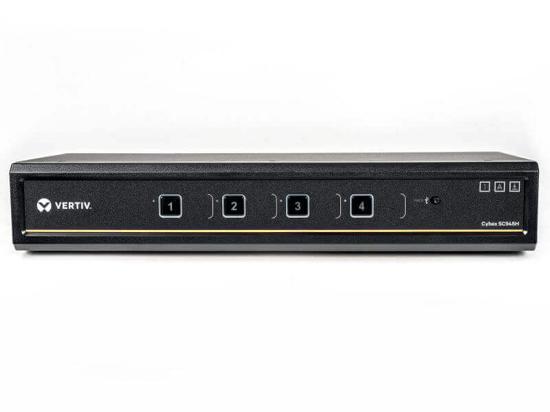 The Cybex™ SC945H secure desktop KVM is designed to meet the stringent specifications of the U.S. government and certified to the NIAP / Common Criteria Protection Profile for Peripheral Sharing Switch version 3.0.