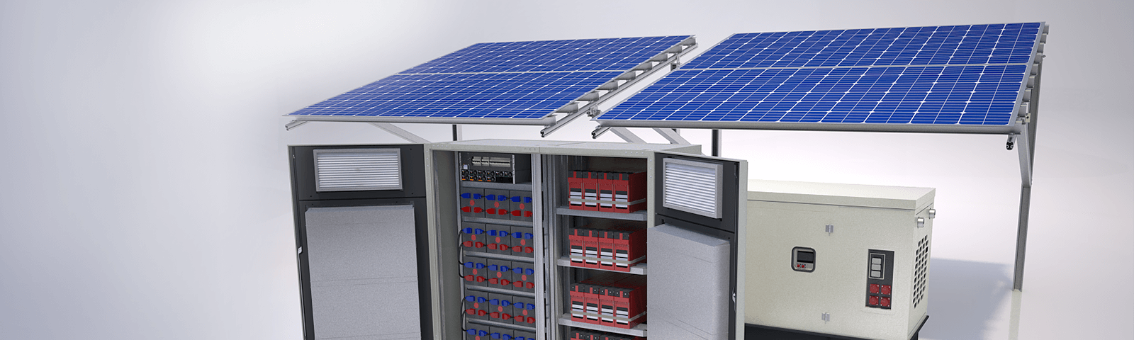In locations where a diesel generator is the only option as the primary energy source, high capacity battery strings can be deployed in conjunction with the generator to provide energy storage. This will decrease generator run time and reduce overall operational and maintenance costs. Further savings can be realized when a solar array is utilized at the site.
