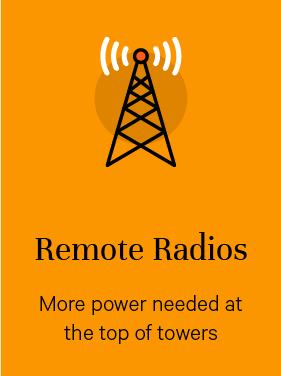 Place Vertiv™ NetSure™ IPE outdoor rectifiers next to radio equipment at the top of poles, towers, or buildings to reduce voltage drop.