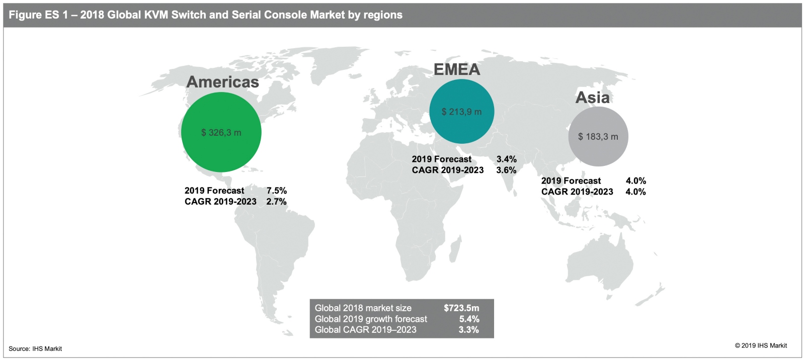 The IHS Markit report revealed IT spending, which grew by more than 6% globally in 2018 and looks set for positive and steady increases from 2019 to 2022, as a key driver for remote IT management devices. As well as overall IT spending growth, another key factor is digital transformation which continues to drive expansion of data centre capacity from the core to the edge, according to IHS Markit. Growth in developing markets, where adoption of KVM is still relatively low, will also be an important future driver.