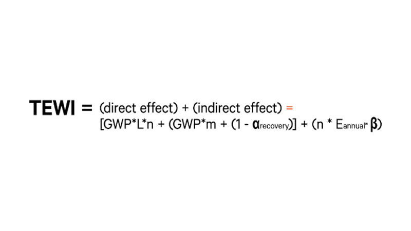 TEWI is the algebraic sum defined under the Montreal Protocol, which represents the direct and indirect effects of the total carbon emissions of a cooling technology through its operating cycle.