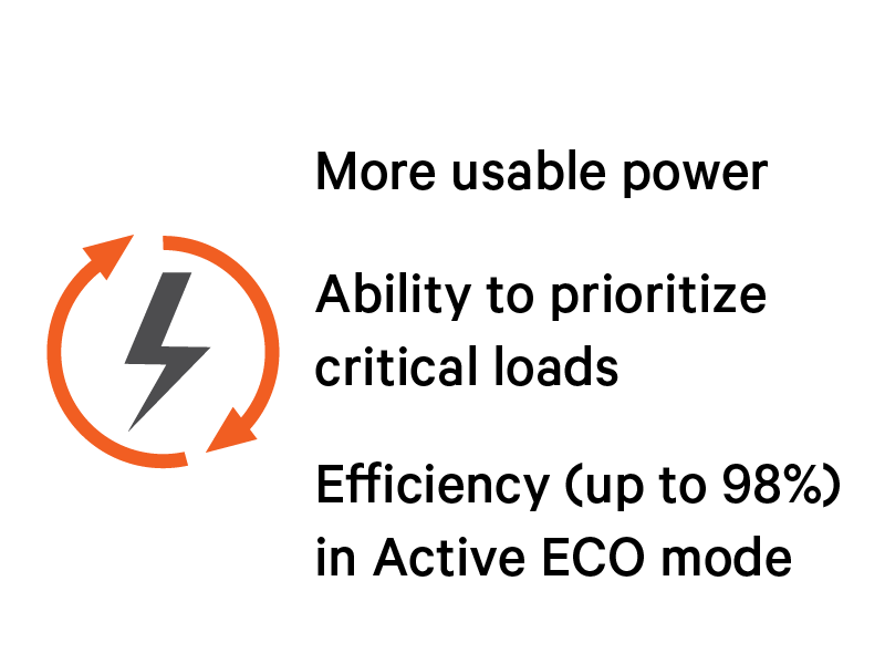 The full range of single-phase Vertiv™ Liebert® GXT5 UPS systems are easy to deploy with convertible rack/tower design that offers installation flexibility. Its gravity-sensing, color LCD provides a user-friendly interface for local configuration and management. Setup and integration are also easy with auto-detection of matching external battery cabinets for additional runtime solutions. With available network interface card (NIC), the Vertiv suite of management solutions including Vertiv™ Power Insight and Vertiv™ LIFE™ Services are available to support your critical infrastructure. Designed for high availability and capacity, these compact UPS models with output power factors up to unity provide more usable power for connected equipment. High efficiency operation of this Energy Star® 2.0 certified UPS means you get protection while supporting sustainability. Increased efficiency is also achieved with Active ECO operating mode.