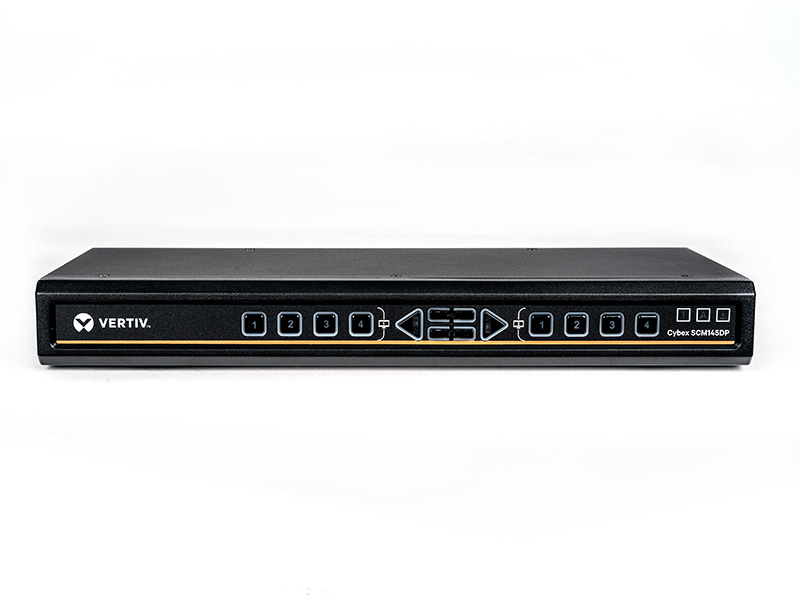 The Vertiv™ Cybex™ SCM145DP secure desktop Matrix KVM switch offers a proven solution for guarding against cyber intrusion at the desktop. These switches are certified to meet the requirements of the latest NIAP Protection Profile for Peripheral Sharing Devices version 3.0. And they also provide users with high resolution compatibility utilizing HDMI and traditional DVI technology.