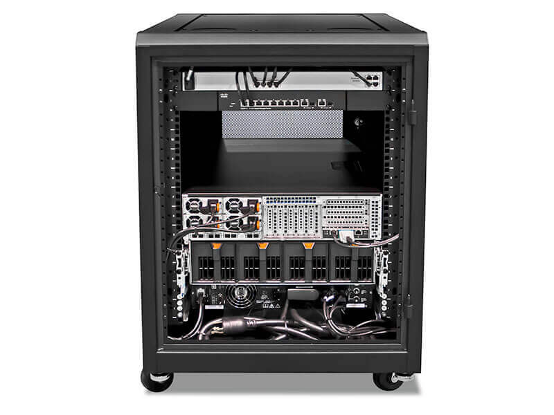 The SmartCabinet for Digital Ceiling contains all supporting infrastructure required to successfully deploy your Cisco Digital Ceiling system in up to 9,600 sq ft. This cabinet is specifically designed to support up to 4 Cisco 3850 switches, with up to 24 60W, PoE ports on each switch, for a maximum of 96 PoE end-points.