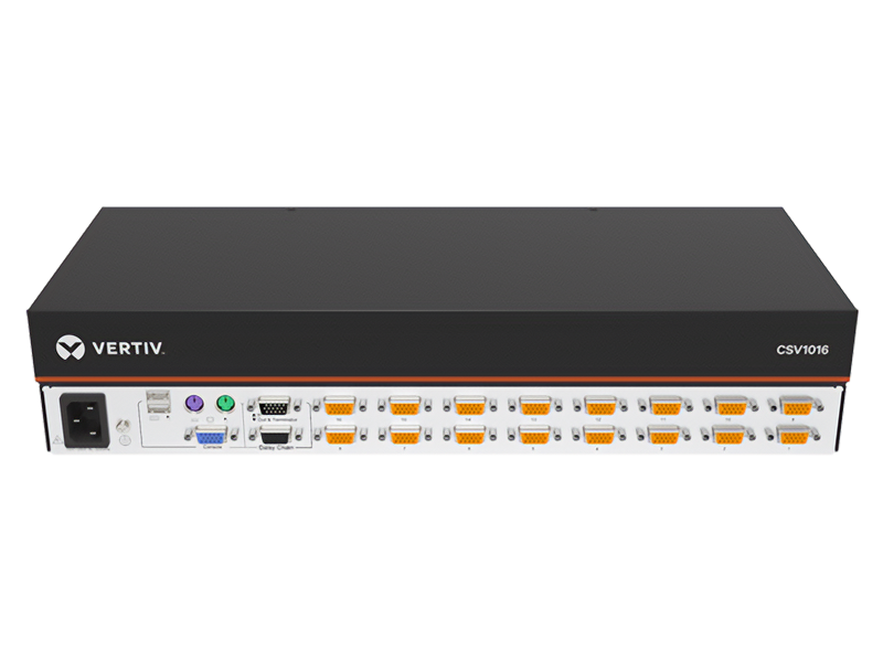 Vertiv™ CSV1000 switches offer a cost-efficient solution to streamline access and control to server resources and increase speed to remediation and operational efficiencies.