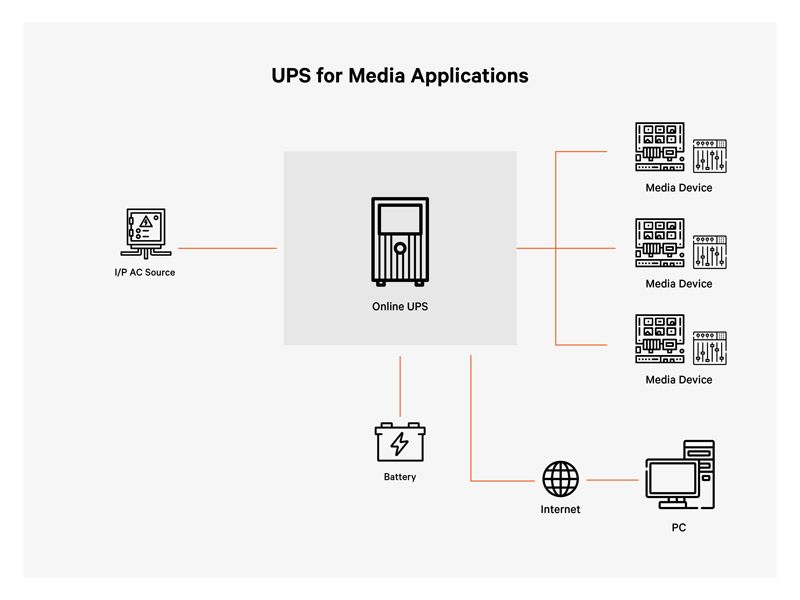 Protect vital data from your businesses by investing in a UPS for Media broadcast Devices. Whether against power outages or power disturbances (sags, surges, and spikes), UPSs will help keep your media broadcast devices protected so you can stay online and continue without any disruptions.