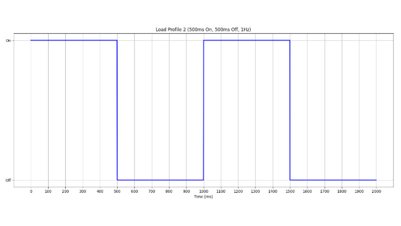Load profile: 500ms ON, 500ms OFF (1 Hz)