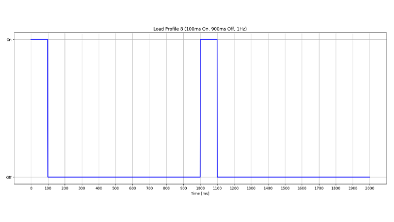 Load profile: 100ms ON, 900ms OFF (1 Hz)