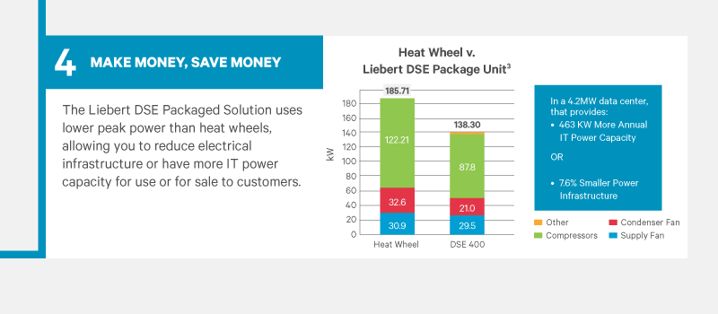 The Liebert® DSE™ Packaged Solution is the world's most efficient and reliable water-free cooling system for data centers. Available as a 400kW packaged solution for building perimeter or rooftop installation, the Liebert DSE 400kW provides a very competitive total cost of ownership solution.
