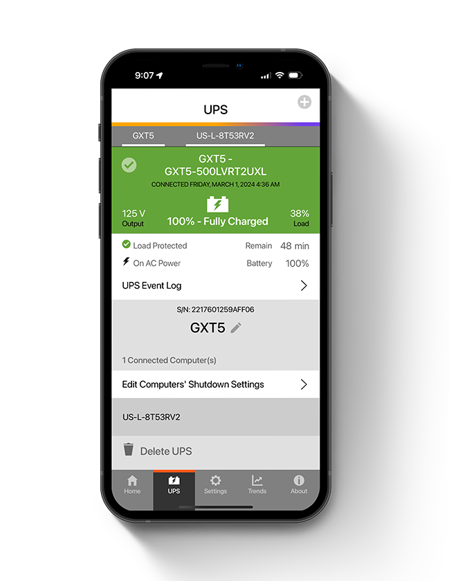 Keep a close eye on your UPS status and receive instant alerts right to your mobile device. While currently dependent on the desktop version for real-time status updates, rest assured that our upcoming UPS companion dongle will bring enhanced portability and accessibility.