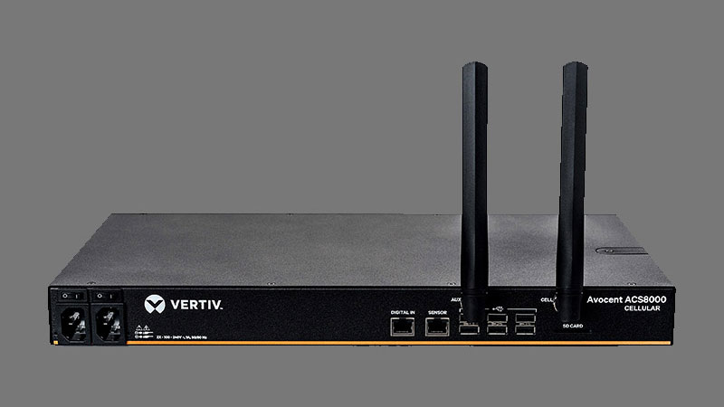 The Avocent® ACS 8000 Advanced Console Server delivers all the remote monitoring and management advantages of a traditional serial console, with the addition of cellular connectivity, enabling it to provide automated failover.