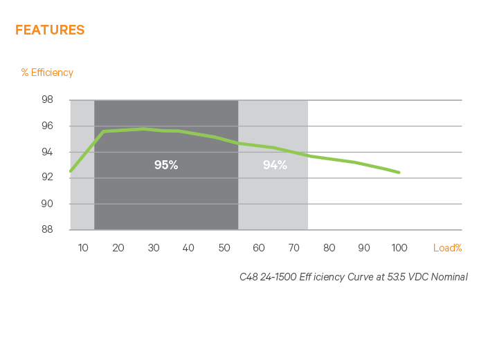 The eSure™ C48/58-1000 Power Extend Converter is a compact device that economically boosts voltage up to -58 VDC to support increasing power needs of remote radio heads on cell towers. The eSure C48/58-1000 plugs into an existing DC distribution panel in the same position as a single-pole bullet circuit breaker, conserving usable space.