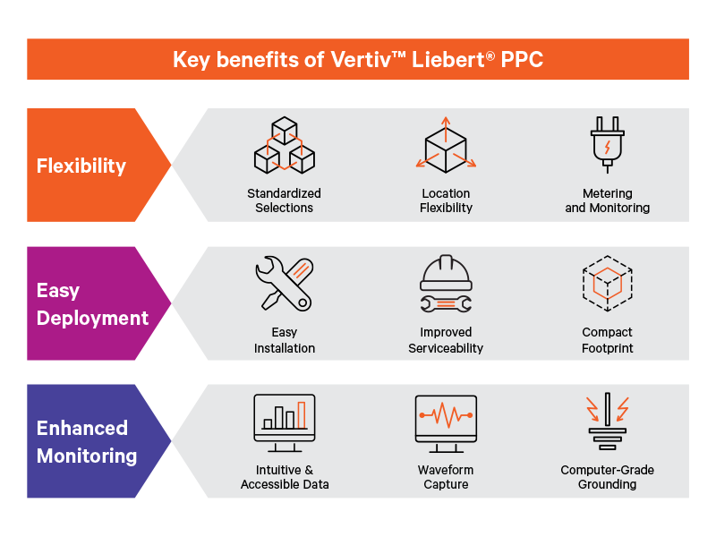 • The Vertiv™ Liebert® PPC offers multiple breaker options that reduce lead times and improve supply chain management.