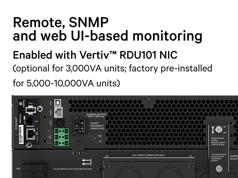 $500,000 Equipment Protection Plan provides reimbursement or replacement of any connected equipment that is damaged by a power surge while connected to your Vertiv UPS.