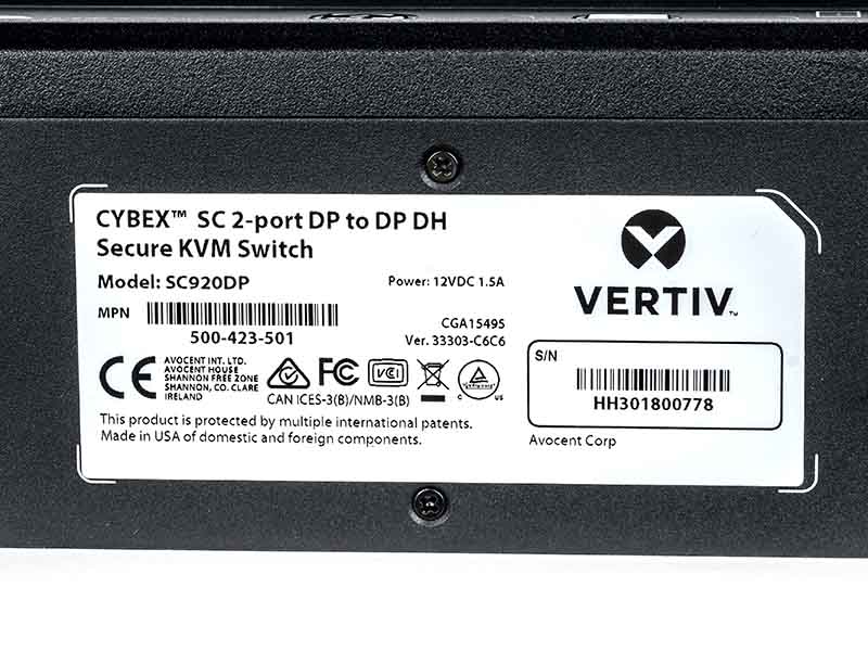 The Cybex Secure SC920DP KVM switch delivers strong, effective security management designed to prevent unauthorized access via peripheral devices while delivering transparent security that does not impede user productivity
