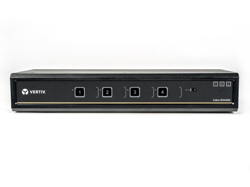The Cybex™ SC945XD secure desktop KVM is designed to meet the stringent specifications of the U.S. government and certified to the NIAP / Common Criteria Protection Profile for Peripheral Sharing Switch version 3.0.