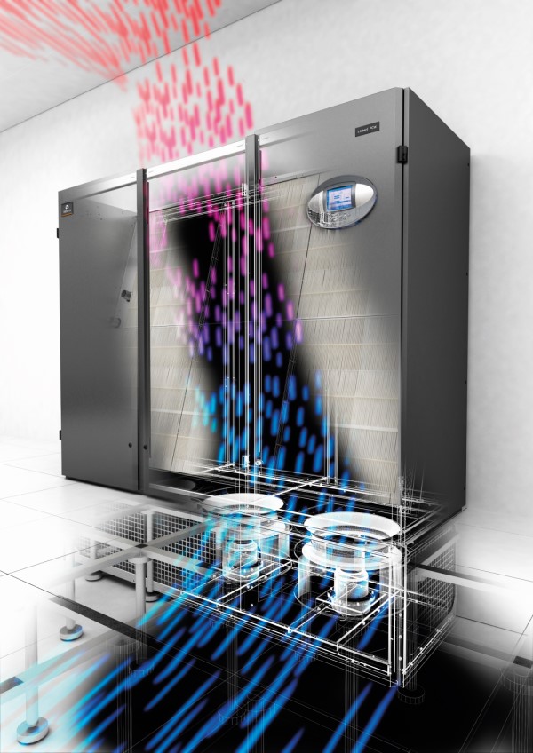 Liebert® PCW matches the server heat load with minimum power consumption thanks to the unique inner aerodynamic, patent granted design, to the new EC Fan 2.0 that reduce the noise level and increase unit efficiency, and to the new automotive high efficiency filters