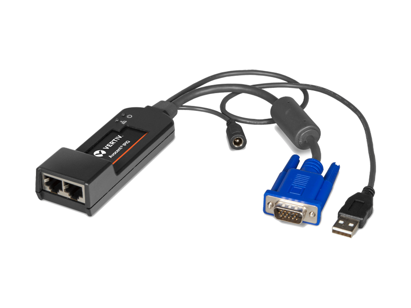 Interface modules connect to the Avocent® Rack Manager appliances and to the end target. They are IP based provide KVM and serial access.