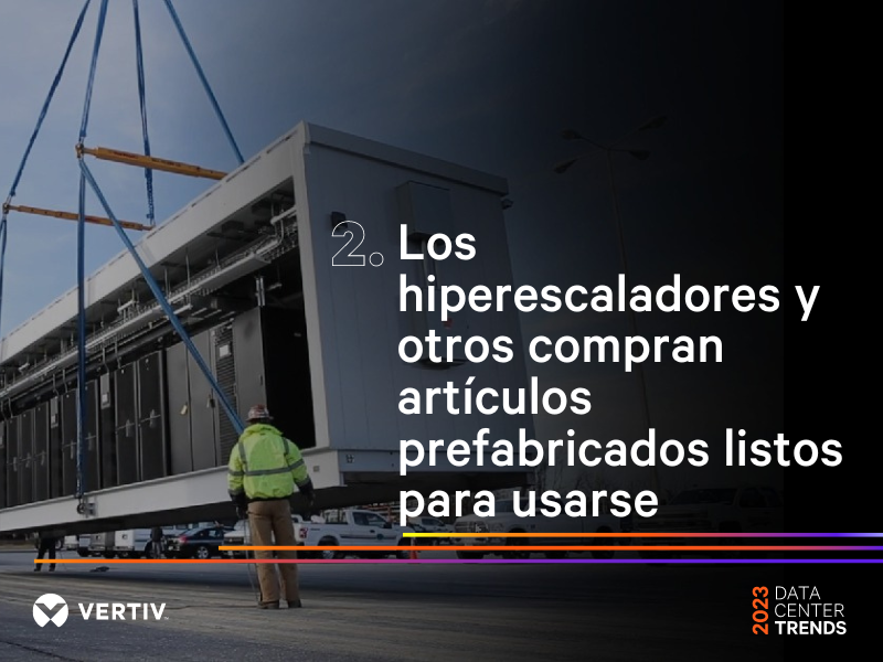 De acuerdo con una encuesta reciente realizada por Omdia, el 99% de los operadores de centros de datos empresariales indica que los diseños de centros de datos modulares prefabricados serán parte de su estrategia futura. Es más que una tendencia; es la nueva normalidad. En 2023, los expertos de Vertiv prevén un cambio continuo en la misma dirección entre los hiperescaladores, a medida que buscan la velocidad y las eficiencias que la estandarización ofrece.