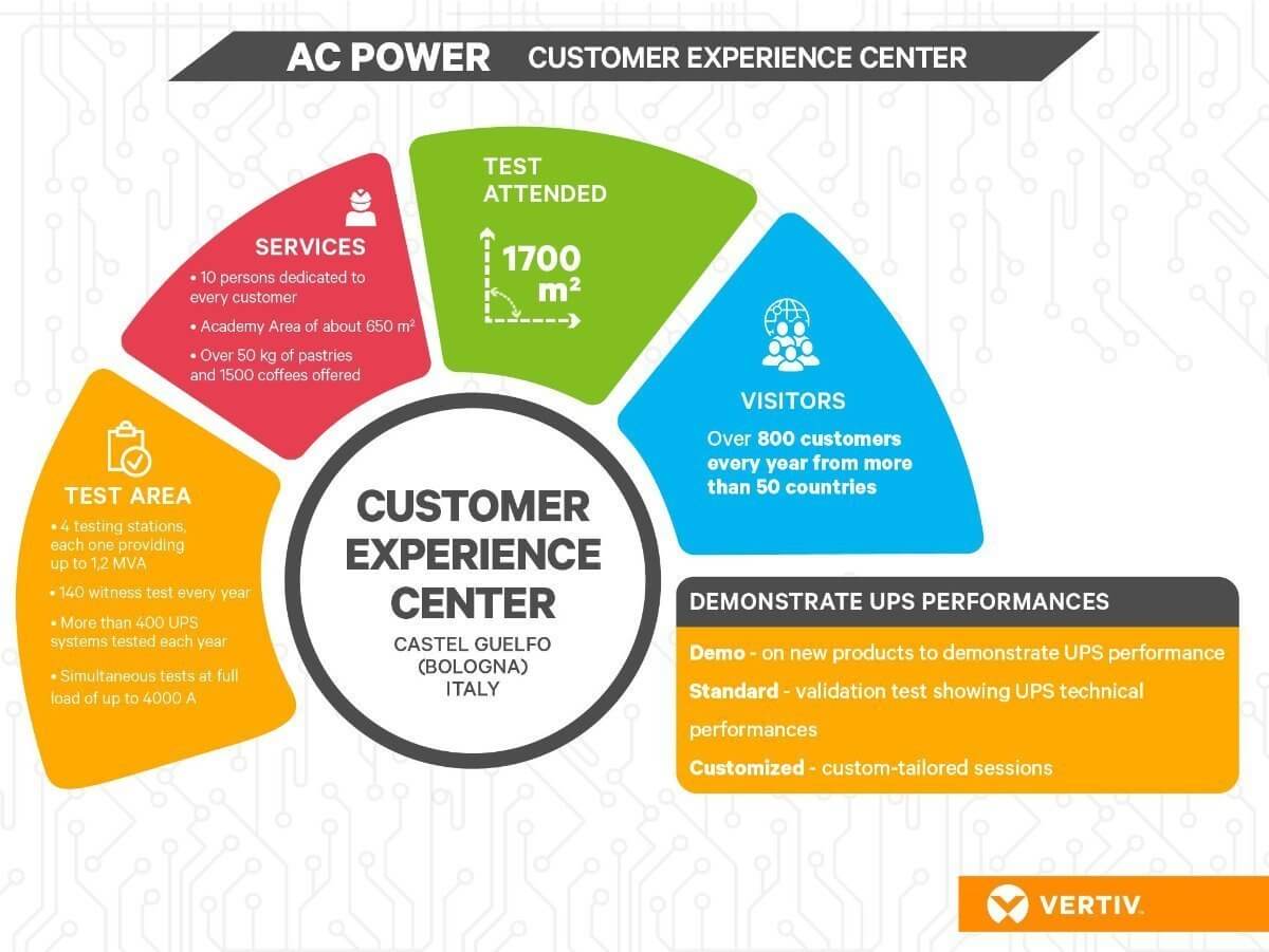 A Castel Guelfo, nelle vicinanze di Bologna, il Customer Experience Center di Vertiv™ permette ai nostri clienti di sperimentare personalmente numerose tecnologie con il supporto costante degli esperti di Ricerca e Sviluppo e dei nostri ingegneri. Mettiamo a disposizione dei nostri clienti la più grande struttura esistente in Europa per i test dei sistemi di alimentazione.