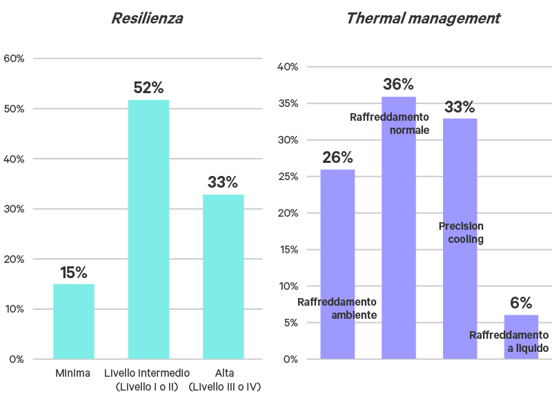 - In totale il 6% ricorre al raffreddamento a liquido, a conferma del fatto che gli ambienti di edge computing ad alta densità stanno diventando sempre più comuni.