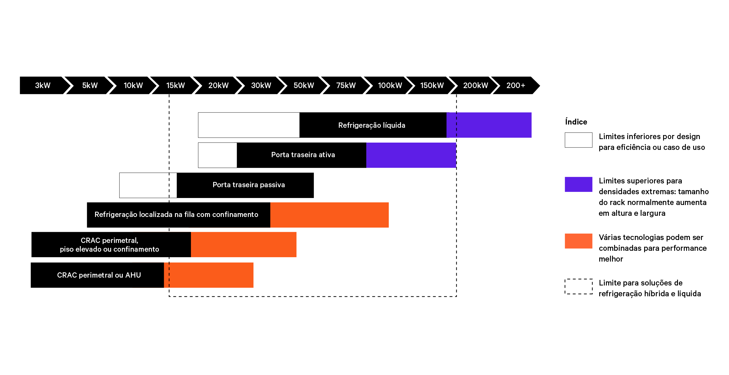 O futuro do gerenciamento térmico do data center já chegou e é um híbrido das tecnologias de refrigeração a ar e a líquido. Então, o quão rapidamente você complementará as cargas de trabalho de maior densidade refrigeradas a ar com uma infraestrutura de refrigeração líquida?
