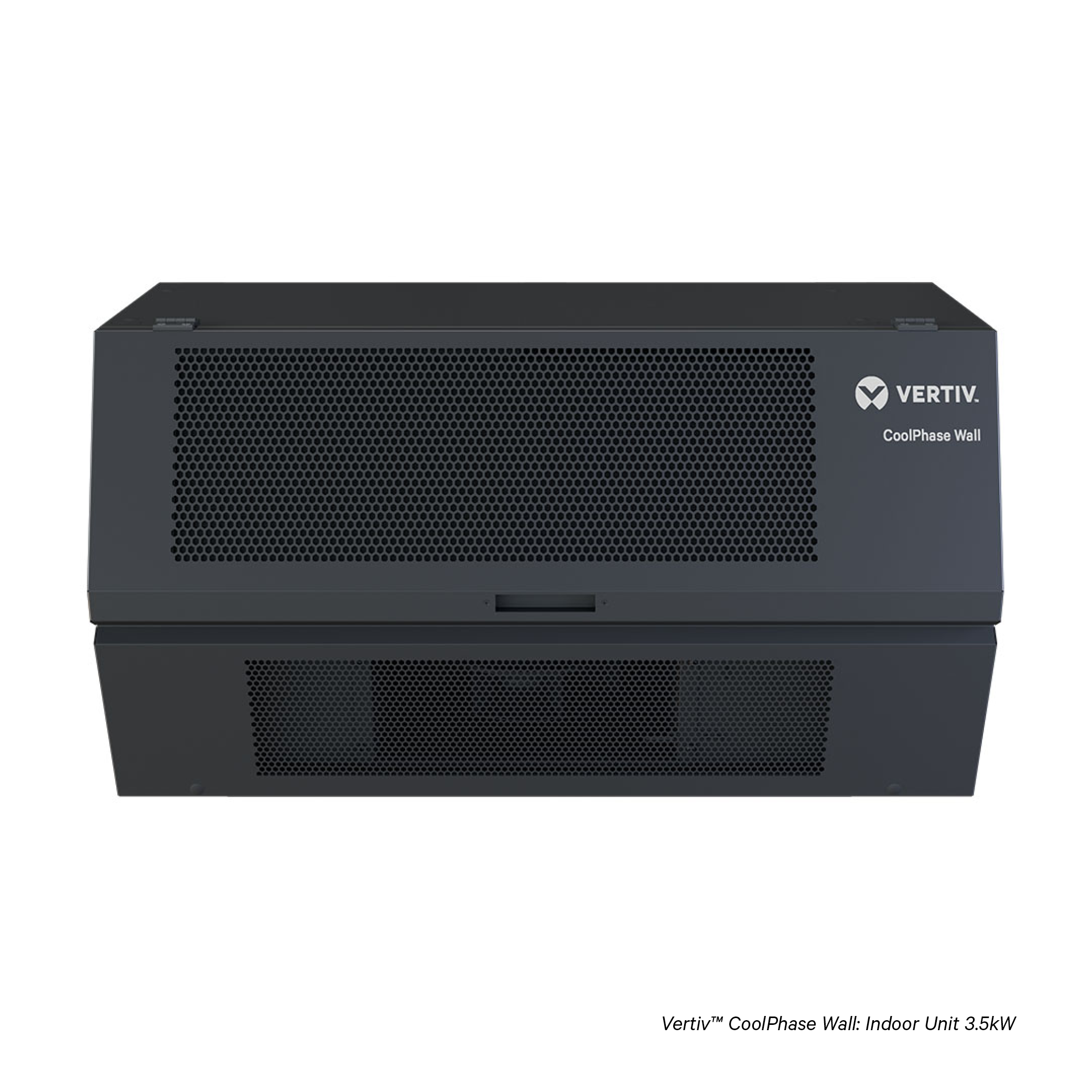 The Vertiv™ CoolPhase Wall WLM030A is a wall-mount split system cooling solution for small technical rooms, server rooms, and edge computing applications. This reliable IT thermal management equipment provides 3.5kW of dedicated cooling capacity even in extreme conditions and without the need for ducted air handling, reducing the risk of overheating and equipment failure. By taking up zero floor space and utilizing a low GWP refrigerant, this compact unit meets the constant data center cooling and energy efficiency demands of increasing equipment load and can be scaled for redundancy.